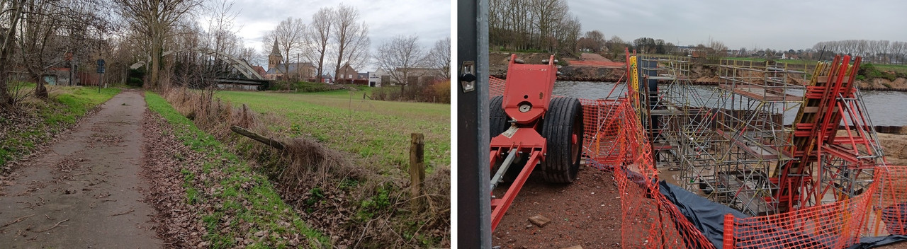 ZULTE - 't Voetvolk - 30 dln. - Vandaag de laatste organisatie van onze club in het stilaan aflopend jaar. Voor een wandeling in de nabije omgeving, maar ook één die de stappers naar Oeselgem (Dentergem) bracht. Op de foto links onder de Sint-Martinuskerk van Oeselgem, onder de brug is de oude Leie al gedempt en is nu de plaats om petanque te spelen. Op de foto rechts onder het Leiekanaal waar men bezig is met de aanleg van een voet- en fietsbrug, aan de overkant ziet men nog net de Limnanderdreef die je naar het dorp van Zulte brengt.