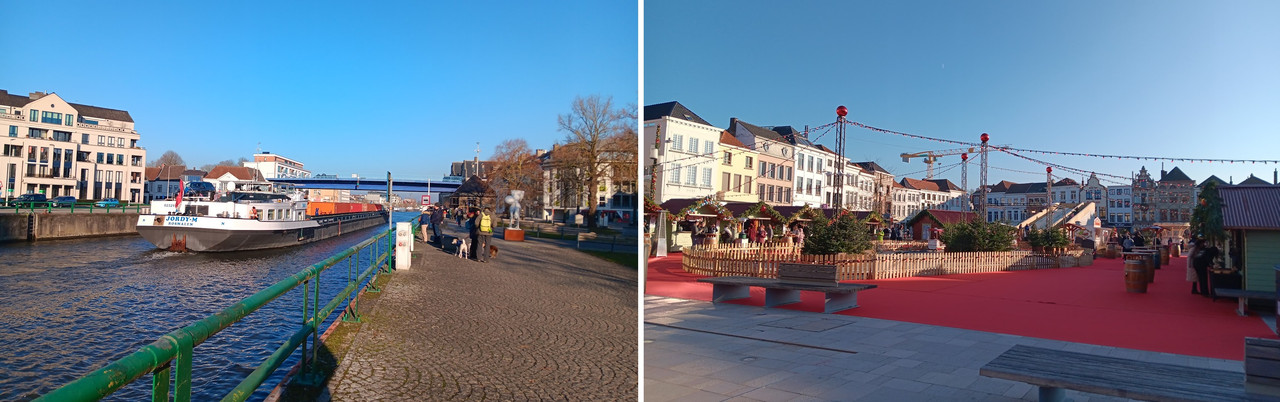ZULTE - 't Voetvolk - 30 dln. - Vandaag de laatste organisatie van onze club in het stilaan aflopend jaar. Voor een wandeling in de nabije omgeving, maar ook één die de stappers naar Oeselgem (Dentergem) bracht. Op de foto links onder de Sint-Martinuskerk van Oeselgem, onder de brug is de oude Leie al gedempt en is nu de plaats om petanque te spelen. Op de foto rechts onder het Leiekanaal waar men bezig is met de aanleg van een voet- en fietsbrug, aan de overkant ziet men nog net de Limnanderdreef die je naar het dorp van Zulte brengt.