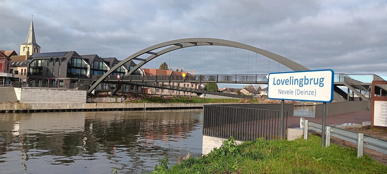 ZULTE - 't Voetvolk - 30 dln. - Vandaag de laatste organisatie van onze club in het stilaan aflopend jaar. Voor een wandeling in de nabije omgeving, maar ook één die de stappers naar Oeselgem (Dentergem) bracht. Op de foto links onder de Sint-Martinuskerk van Oeselgem, onder de brug is de oude Leie al gedempt en is nu de plaats om petanque te spelen. Op de foto rechts onder het Leiekanaal waar men bezig is met de aanleg van een voet- en fietsbrug, aan de overkant ziet men nog net de Limnanderdreef die je naar het dorp van Zulte brengt.