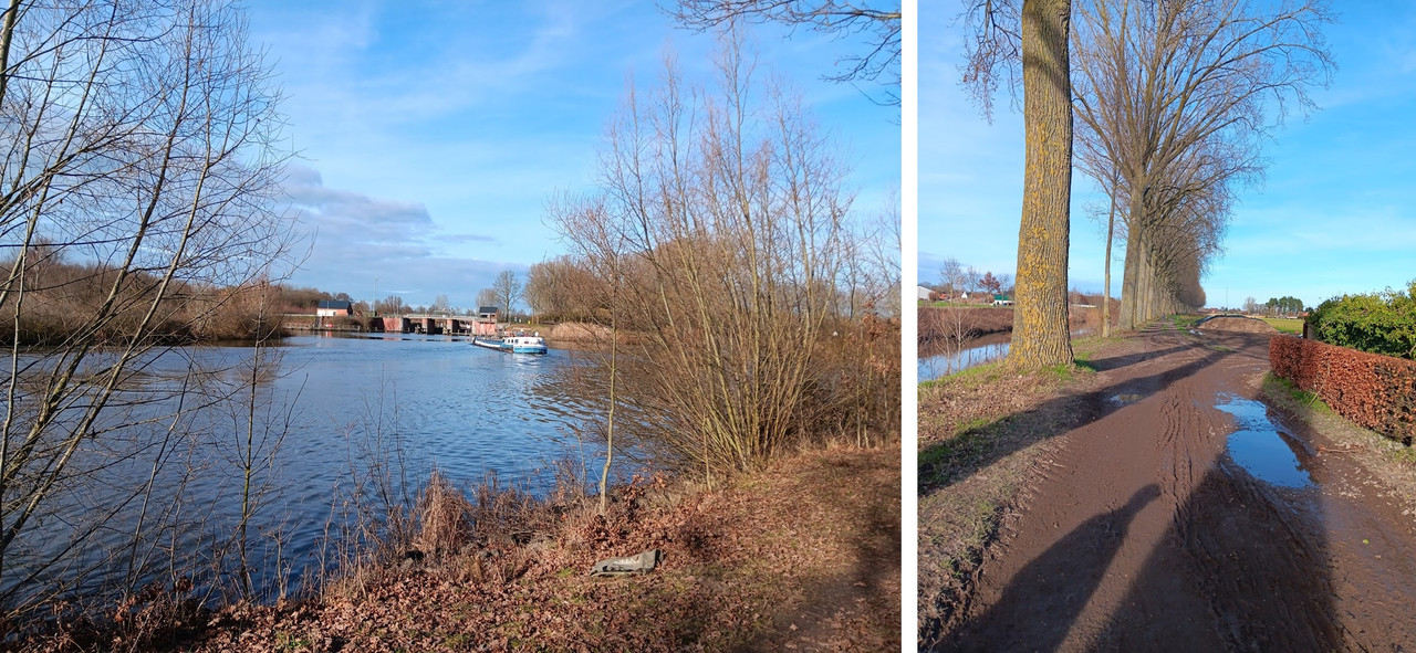 Op de foto rechts liepen we langs de Leie nabij de recent aangelegde Vlasburg die gretig wordt gebruikt door wandelaars en fietsers al dan niet met een recreatieve bedoeling. Links de oude Leie met een voormalige ast, als stille getuige van de tijd dat toen het vlas werd geroot en nadien gedroogd in de ast. Sommigen staan er nog wezenloos bij, anderen werden omgevormd tot woningen.
