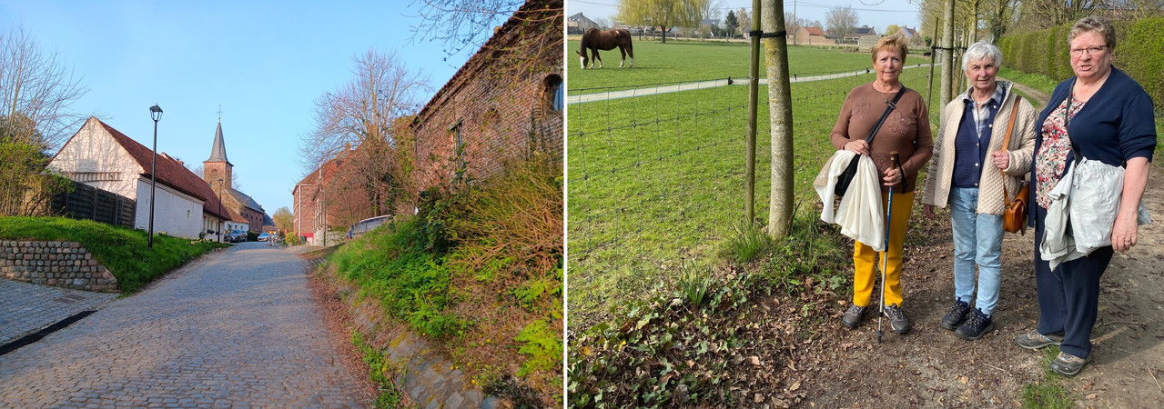 Op de foto rechts liepen we langs de Leie nabij de recent aangelegde Vlasburg die gretig wordt gebruikt door wandelaars en fietsers al dan niet met een recreatieve bedoeling. Links de oude Leie met een voormalige ast, als stille getuige van de tijd dat toen het vlas werd geroot en nadien gedroogd in de ast. Sommigen staan er nog wezenloos bij, anderen werden omgevormd tot woningen.