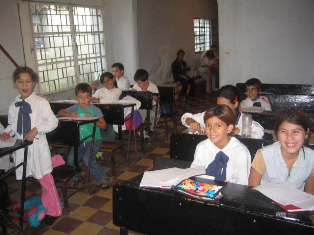 Terwijl ik vele kilometers verder in mar del plata aan het zwemmen was, liep de grote vakantie hier in Uruguay ten einde en opende alle scholen hun deuren. Vanaf 5 maart kleurden de straten hier wit en lopen alle lagere school kinderen die naar een publieke school gaan hier rond met een witte (labo)short en donkerblauwe strik. Deze scholen zijn gratis en met hun uniform aan mogen ze ook gratis de bus nemen. Private scholen hebben andere uniformen eigen aan hun school en zijn niet gratis. Je hebt hier ook de lagereschool van 6 tot 12 jaar en de middelbareschool van 12 tot 18 jaar. Alle kinderen kunnen kiezen of ze in de voormiddag van 8u tot 12u of in de namiddag van 13u tot 17u naar school gaan (maar elke dag hetzelfde natuurlijk). Per week hebben de kinderen hier dus veel minder les dan bij on in België.