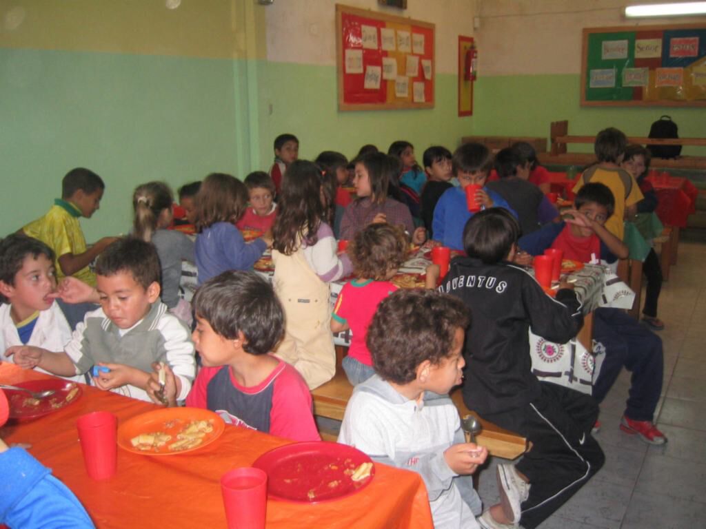 Nelly (mijn pleegmoeder) en Christin staan achter het vuur en zorgen ervoor dat alles naar smaak is en vlotjes verloopt. Zij hebben reeds vele jaren ervaring en het draait in de keuken dan ook als een geoliede machine. Afwisselend is het de ene week een hutsepot van tomatensaus, groenten en rijst en de andere week met pasta. We plaatsen de volle borden op tafel en vullen de glazen en vanaf 12u stromen de kinderen binnen in groepjes van 12 per gedekte tafel. Ze eten hun bord leeg (anders geen dessert, een ramp voor elk kind!), brengen hun bord, lepel en beker naar het afwas-team, ontvangen hun dessert (meestal chocolat) en ze gaan weer naar buiten. We dekken de tafel opnieuw voor de volgende groep, en zo gaat het verder tot ongeveer 13.30u. Veel heen en weer geloop, maar het blijft overzichtelijk! Dan rest er nog de opkuis en een siësta.