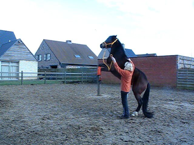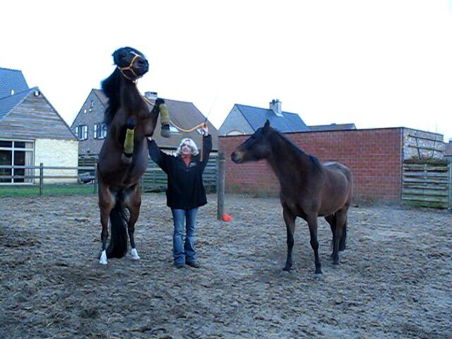 today i went for a walk on the halter with paco ! during this walk , i was training the apport ! paco is learning this very good and he was excited en happy about this apport game so i had a nice warm hat on my head and i throw this hat on the ground and said to paco APPORT !!!!! and what a nice horse he is , so he goes to my hat , took it , shake with my hat and he throws it away !!! RIGHT IN A BIG PIECE OF DOGSHIT !!!!!!