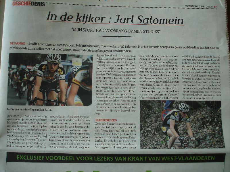 Jarl Salomein, oud-leerling aan het KTA De Panne, is een kustjongen die zijn doorbraak kende in zijn 3de jaar bij de beloften. Hij pakte uit met mooie zeges in de Franse kasseiklassieker Circuit du Pévèle en de Omloop het Nieuwsblad, en viel op door zijn regelmaat. Jarl is een rappe renner die graag koerst over de kasseien. Een operatie vertraagde zijn opbouw naar 2011 maar in de eerste rit van de Ster van Bessèges wist hij toch meteen 10de te worden.