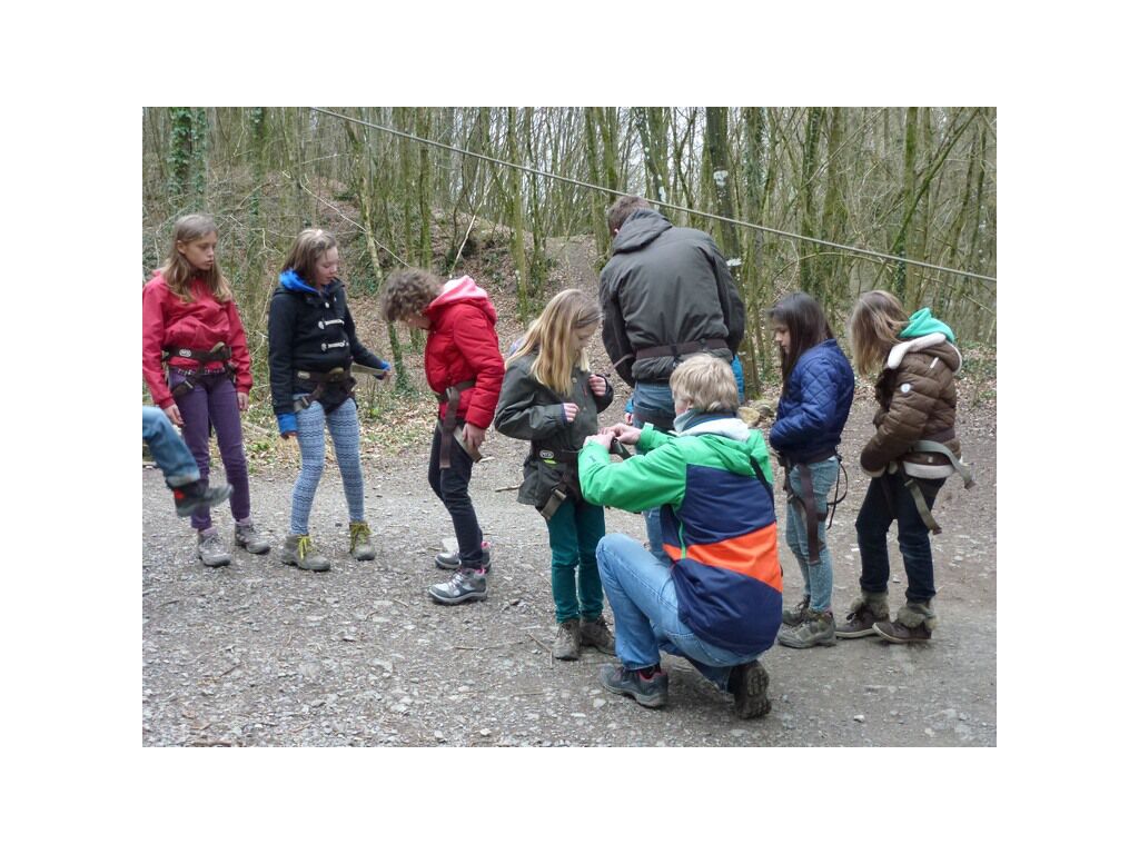 Vanmorgen opgestaan met een heerlijke Ardens zonnetje. Ideaal weer om op avonturenloop te gaan dus. Spoorwegbrug, indianenbrug,...onze leerlingen deinsden er niet voor terug. Op het einde van de wandeling kwamen we aan de rappel! Tegen topsnelheden zoefden we naar beneden...meester Karel had moeite om alles te filmen Daar kregen we natuurlijk wel honger van...een magere maaltijd werd voor ons voorgeschoteld: FRIET met stoofvlees en mayonaise!