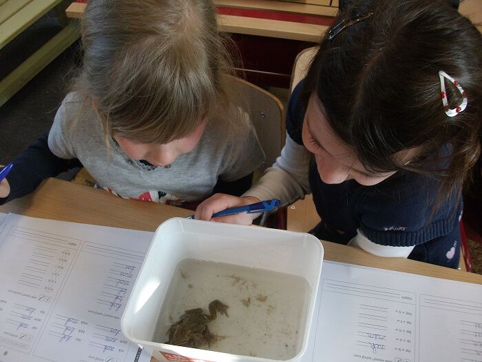 En plots hadden we, dankzij het bezoekje aan het toilet van Nicolas,...2 nieuwe klasgenootjes.....ze waren wel heel erg verliefd!!