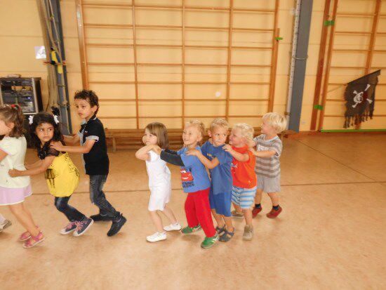 Op vrijdag 6 september maakten wij ons klaar voor onze allereerste PYAMAPARTY.! In vol ornaat trokken wij naar de turnzaal. Maar daar wachtte ons een grote verrassing want wij werden er begroet door echte PIRATEN ! Gelukkig waren ze niet zo gevaarlijk als ze eruit zagen. Wij kregen een schat om door te geven en onder elk papiertje stond er een opdracht. Zo moesten wij dansen, dieren nabootsen,...Daarna deelden ze de schat met ons ......een lekker snoepje. Tot slot kregen we ook nog een zakje chips en een fruitsapje. LEKKER !!!!!