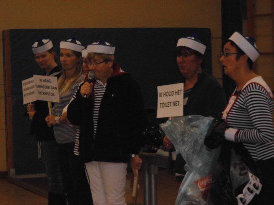 Op woensdag 6 november kregen we opnieuw een voorstelling van ons jaarthema. De matrozen waren door de zeevaartpolitie van hun boot gehaald omdat hij veel te vies en vuil was. Ze staken de schuld op elkaar, tot ze merkten dat ieder zijn valies even vuil was : natte handdoeken, papiertjes, oude kranten, stinkende sokken, lege flessen,....Ze sloegen de handen in elkaar om alles te sorteren en op te ruimen.Als ze dit nu ook met hun boot doen, mogen ze misschien verder varen....