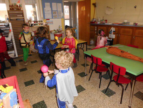 Woensdag 26 februari. Allemaal rare figuren in mijn rij. Van mijn kinderen geen spoor....tot ze mij vertelden dat ze verkleed waren. Ik had hen niet herkend. We hebben eerst elkaars outfit bewonderd in de klas. Daarna trokken we richting verschillende kamers waar we allerlei leuke dingen mochten doen. Ik loods u doorheen de verschillende kamers en de hele voormiddag aan de hand van de rubrieken hieronder. VEEL PLEZIER !