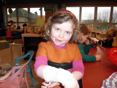 Op donderdag kwam de mama van Phoebe naar onze klas, zij is verpleegster en bracht allerlei spulletjes mee. Ze vertelde over haar werk en we mochten een verbandje aan. DANKJEWEL mevrouw, we hebben veel van jou geleerd.