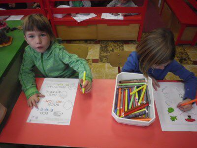 Na ons regenachtig bezoek aan het bos, hebben we heel wat werkjes in de klas gemaakt...