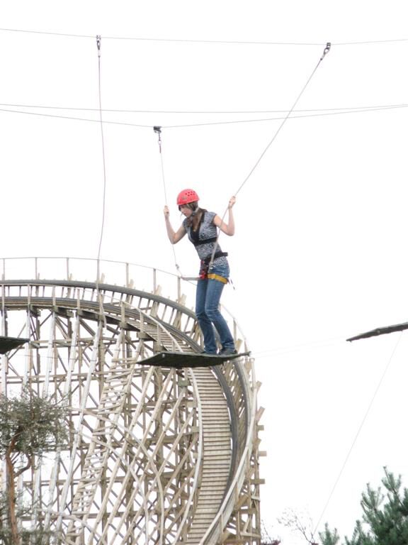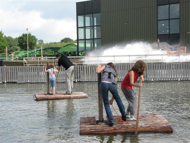 Gisteren zijn we naar Toverland in Sevenum geweest. Was echt heel erg leuk. Heel veel binnen maar de hallen zijn zo groot en licht dat je dat haast niet door hebt. Leuke dingen voor Jasmijne maar ook voor de groten. Vooral de booster-bike was erg spectaculair. Je zit op een soort van motor en wordt dan "afgeschoten" met een vaartje van 75 km per uur en dan rij je allerlei bochten en hobbels. "Troy" is de houten achtbaan van ruim één km lang. Zelfs Jasmijne mocht erin en als ik een kunstgebit had gehad was ie eruit getrild. Er was ook een survival baan op 5 meter hoogte. Met een klimtuigje aan en een helm op moest je een heel parcours lopen/klimmen over touwen en balken. Vlak voor Hannah en Mirthe aan de beurt waren was er een klein meisje van een jaar of 8 en die durfde op een gegeven moment niet meer verder. Die zat te huilen op een balkje op 5 meter hoogte dus toen kwam de meneer haar "redden". Je moest over een evenwichtsbalk lopen van een paar meter lang en dan een overstap maken van een halve meter en dan weer verder over de balk. Die stap was het probleem maar met hulp van de meneer lukte het en kon (moest) ze weer verder. De jongen die vervolgens aan de beurt was keerde na 2 meter terug en ook de dame erna had het na 3 stappen wel gezien. En toen kwam Mirthe. Het ging heel goed. Wij hadden natuurlijk goed opgelet hoe die man het deed en konden dus aanwijzingen geven (je weet wel : de beste stuurlui...) Dat "gat" was natuurlijk tricky maar ze kwam eroverheen en ook Hannah ging fantastisch. Deze attractie was dus gelijk de meest spannende van allemaal. De wildwaterbaan (de eerst berg ga je achterste voren naar beneden), de bobslee, villa fiasco (een huis met allerlei rolbanden, acheruitloop vloeren en hobbeldingen), het waterspeelpark (de spuiters waren favouriet) : alles was leuk. En ik vond het het leukste dat het zo lekker rustig was. Niet meer dan een paar mensen in de wachtrijen en soms kon je zelfs blijven zitten. Dus als je de Efteling te groot en te duur vind dan moet je dus naar Toverland.
