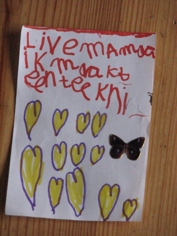 Jasmijne kan al hele mooie brieven schrijven die ze dan in mijn bed legt. Soms is het zeer raadselachtig wat er nu precies staat maar deze is prima te lezen.
