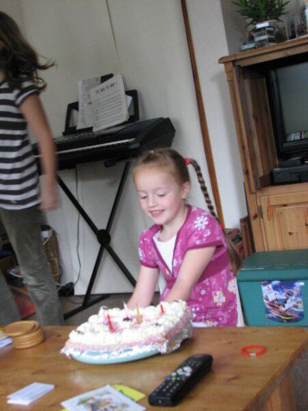 Zaterdag was het dus groot feest. Jasmijne 6 jaar. Alleen jammer dat ze ziek was. Heeft drie keer overgegeven maar dat weerhield haar er niet van om gewoon taart en chips mee te eten. Gelukkig