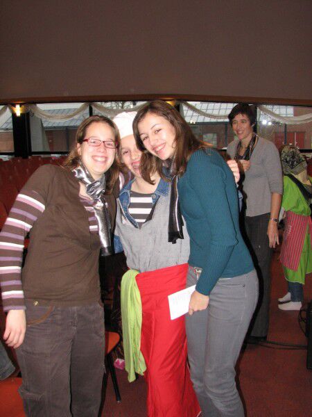 De musical ging heel goed op eerste kerstdag. Tijdens het oefenen stond Jasmijne nog ineens heel krampachtig te doen. Toen ik naar haar toe liep ging ze heel hard huilen en boven het geluid van de band uit kon ik nog net verstaan wat ze zei : "bang". Gelukkig begon toen precies haar favoriete nummer (Ik ben jozef timmerman) dus is ze weer het podium opgeklommen en heeft ze de hele musical uitgezongen. Thuis zei ik dat ik heel trots op haar was dat ze zo dapper was geweest. "Zo trots dat ik wel een stuk chocola verdiend heb?" vroeg de uitgekookte tante. Nou, dat was gelukkig het geval. Een halve reep en de andere helft voor als het in het echies ook goed zou gaan. En ook dat gebeurde. Alles keihard meegezongen en ook Mirthe kreeg heel veel complimenten. Dat ze er zo'n goede show van kon maken.