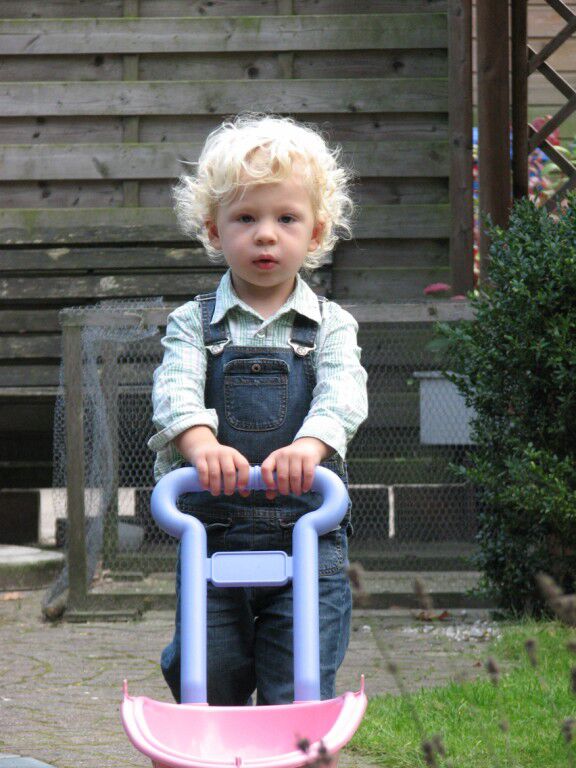hij eenmaal sliep ging het ook door tot de volgende ochtend. Jasmijne liet hem aan iedereen op school zien : "dit is mijn neefje en hij logeert bij ons." Had veel bekijks in zijn gestreepte regenboogjas uit Nepal. Toen Pien en Chris weer terug kwamen ging hij gelijk alles doen wat hij in die twee dagen niet had gedaan zoals op de bank rennen, z'n poffertjesbord omkeren en dat soort dingen. Zal wel kind eigen zijn want al m'n oppaskindjes slaan door zodra pa of ma in beeld komt.