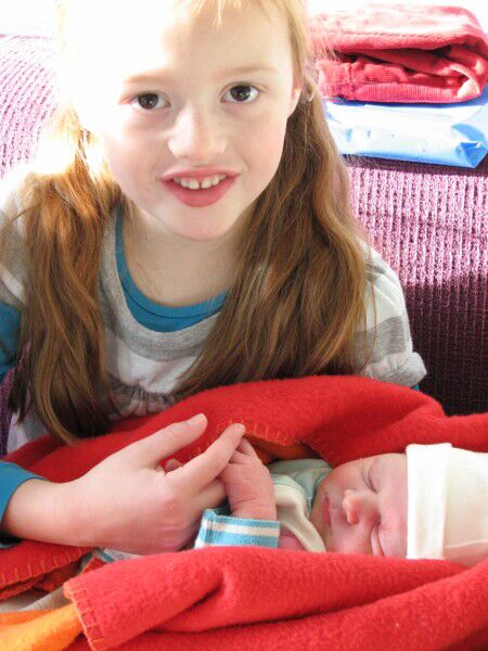 bij de ingang het leukste en de meiden de dansmachine. Alleen kreeg Hannah van al dat gespring weer erge buikpijn. Terug uiteraard file en toen maar gelijk doorgereden naar de Kabouterhut. Iedereen at zowaar bijna z'n bord leeg maar Jasmijne had dan ook poffertjes, Mirthe een kindermenu met saté en Hannah een pannenkoek met ham, kaas en ananas dus dat leek een pizza Hawaii. Vrijdag kreeg Margriet na een pittige ondervraging haar BUL (in Rotterdam.) Was erg gezellig. Lekkere tortilla's gegeten en echte (die van m'n moeder) taart. En toen we rond twee uur 's middags weer terug reden zaten we natuurlijk in de file. Zaterdag naar Pien want die had donderdagavond een baby gekregen. (Bijna voor niks, in drie uurtjes was ie er.) Dus weer naar Amsterdam. Florian was erg blij om (vooral) Jasmijne weer te zien. Was ook erg blij met z'n nieuwe broertje QUINTEN want die had voor hem een graafmachine meegenomen. Zondag een echte rustdag (behalve dat Leendert moest kosteren.) En gisteren gingen de kinderen weer naar school en hebben Leendert en ik allerhande klusjes in huis gedaan zoals een nieuwe keukenkraan monteren, de badkamerkraan vastzetten en een kastje ophangen. Leendert lag dus steeds op z'n rug in een gootsteenkast en ik gaf de juiste tangen aan en sprak wijze woorden. Goede verdeling. Nu moet ik alle kasten weer gaan indelen en inruimen.
