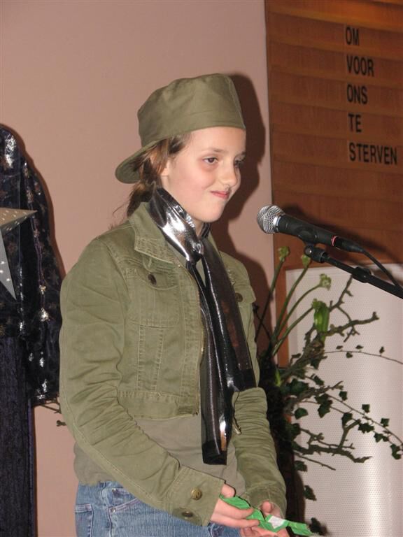 Gisteren de hele dag aan het naaien geweest (was al weer even geleden.) Jasmijne kwam donderdag uit school met de mededeling dat de juffen dinsdag hun verjaardag vieren en dat ze allemaal verkleed mogen als iemand uit Pluk. Zeg ik:"leuk, ik heb nog wel een roze strik en dan ben je in je roze jurk Aagje" Maar nee. Mevrouw wenst als de "ta lie loe" Krullevaar te gaan. Dus dan naai je als goede moeder een Krullevaarpak. Ik had nog een bontig lichtbeige stofje liggen dus nu heb ik een soort van trui met afneembare (met klitteband) vleugels. Een soort heel kort pofbroekje en eronder een bruin gesteepte maillot. En op haar hoofd een soort bivakmuts met een pluim boven op. Grote ogen en een orange snavel ga ik sminken (morgen even oefenen) en dan hebben we een uitgestorven vogel. Hoop dat de vleugels blijven zitten. Foto's volgen.