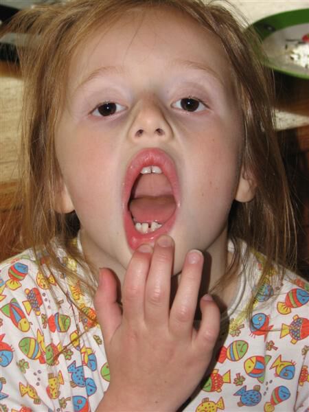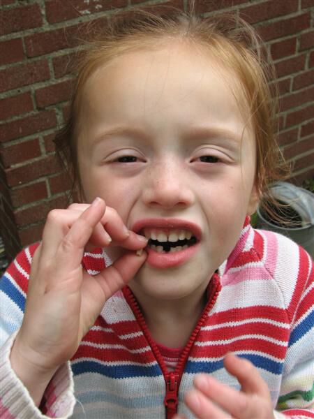 Jasmijne heeft haar eerste tand eruit ! Ging nog redelijk snel. Vorige zondag beet ze in een stuk overjarige chocoladeletter en toen zat ie los. Helemaal drama. Want het deed zeer, er was een beetje bloed en mama zat in de kerk. Toen ik thuis kwam zag ze er zeer kwetsbaar uit maar het huilen was gestopt. En de hele week door zat ie steeds losser en kreeg ik af en toe de opdracht om hem weer recht te duwen. Gistermiddag waren we in het Schothorsterbos geweest en op de terugweg, op de fiets, had ze ineens haar tand in haar hand. Ze was een snoepje aan het kauwen dus al het bloed werd meteen afgevoerd en toen we thuis waren zag je niets meer. De tandenfee is ook al langsgeweest maar dat mocht alleen onder voorwaarde dat ze de tand mocht houden.
