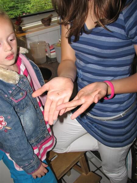 Vandaag is Hannah weer thuis gekomen en zijn we weer compleet. Op Hemelvaartsdag was Hannah met Dick, Mirthe en Jasmijne met de trein naar Katwijk gegaan en wij met de auto. 's Avonds zijn we met Jasmijne weer terug gegaan want Mijntje moest vrijdag weer naar zwemles. Mirthe kwam zaterdagmiddag weer thuis en Hannah was toen vanaf het station (na Mirthe in de goede bus te hebben gezet) doorgegaan naar Hanneke en Jacob. Vanmorgen kwam ze samen met Haddassah weer naar huis (en toen kregen ze in de trein een boete omdat ze (geheel onwetend en per ongeluk) een half uur voor 9 uur van de kortingskaart hadden gebruik gemaakt). Bijna 50 euro boete. Maar goed dat Jasmijne er niet bij was. Die had het niet overleefd.