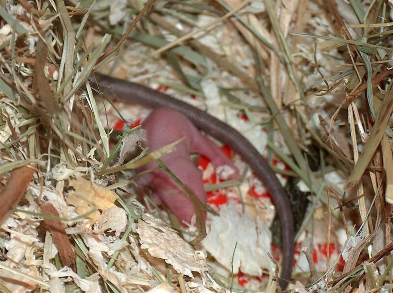 Eén babymuisje. Eéntje maar. Maar wel een schatje. Geheel rose en blind en kaal.
