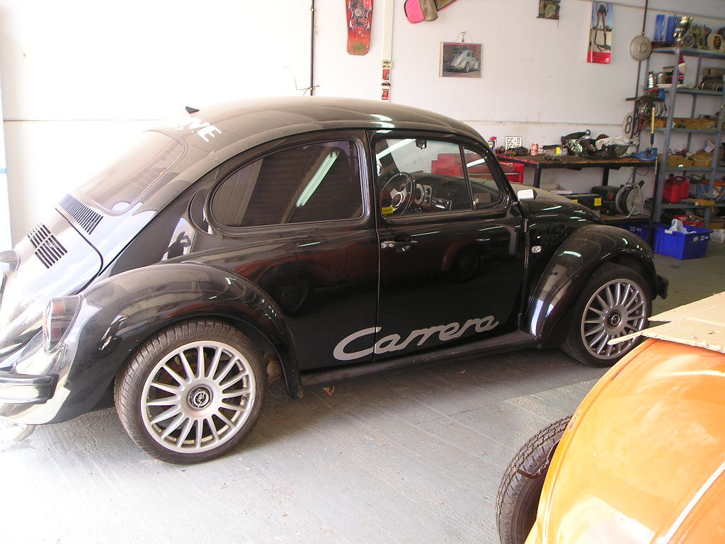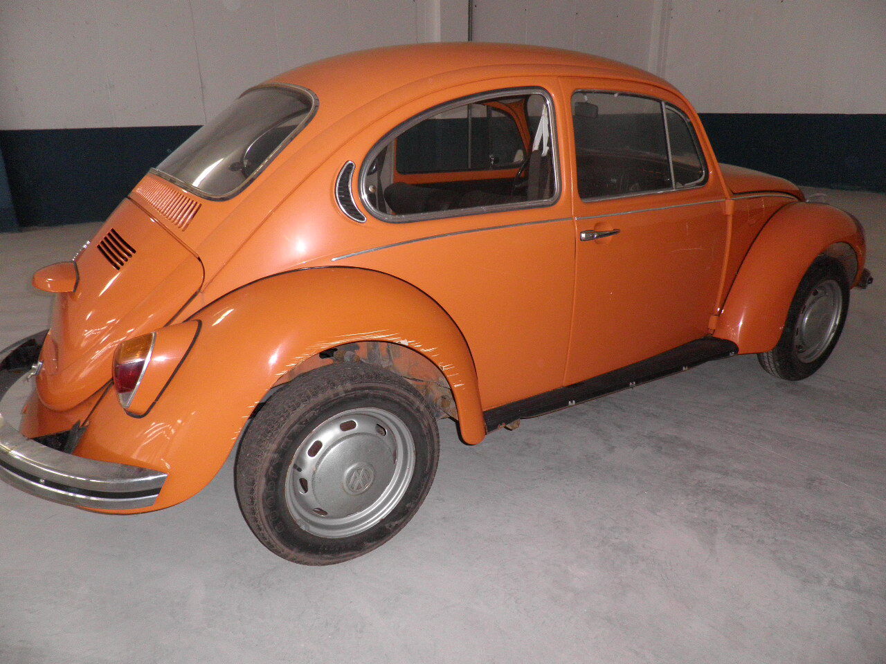 por fin nos hemos decidido de sacar un escarabajito del olvido. lo teniamos abandonado pero parece que es uno de esos VW's que no se quieren morir. lo tenemos 5 años tirado por ahi y ni siquiera desinflan las ruedas, fuerte guerrero la chapa y el chasis estan muy sanas, aparte del tipico podrido en el paso de rueda delantero. la idea es arreglar esos 2 podridos y dejar el coche tal como esta. ademas se trata de un modelo 67, modelito especial : el unico año que venia con el capot semilargo y los labios en los tapacubos... ademas el señorito es un 6V...