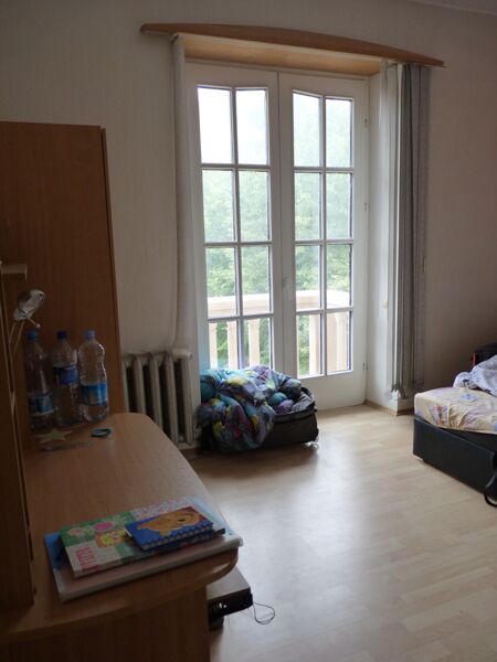 Dit is m'n kamertje.. Toch een beetje triestig é?! De volgende dag zijn we dan naar een paar agentschappen ('immobiliënkantoren') geweest.. Bij het eerste hebben we 10 euro per man betaald en niets gevonden.. Dan zijn we naar een tweede gegaan en die zeiden: we hebben nu niets, kom nog eens terug binnen 17 dagen.. Maar dat zagen wij natuurlijk niet zitten.. Dus hebben we Roberta (de mentor die ons toen geholpen heeft) een beetje gepusht om nog wat verder te kijken.. We zijn dan op internet wat beginnen zoeken en hebben een goed agentschap gevonden, zijn daar naartoe gegaan en waren na 5 minuten weer buiten om naar een appartement te gaan kijken.. We waren direct super enthousiast en hebben direct beslist om het te nemen.. We waren toen echt wel superblij, want een half uur daarvoor dachten we nog dat we nog 2 weken gingen moeten wachten en nu hadden we ineens een superleuk appartement!! 't is wel een typisch meisjesappartement met roze muren, bloemetjesbehang en een grote spiegel met parketvloer (lees 'dansvloer') .. We zijn wel pas de dag nadien verhuisd, want we waren op de dag zelf veel te moe..