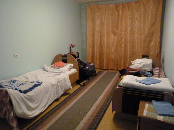Dit is het gebouw van de student dorms.. Stefanija (meisje dat ons heel hard geholpen heeft hier) heeft ons naar daar gebracht de eerste avond.. Er hingen overal mensen over hun balkons, er kwamen direct 2 gasten naar buiten om onze baggage aan te nemen en ze waren daar dan ook direct mee weg, als grapje (haha!). Bart zat op het 3e verdiep en ik op het gelijkvloers.. Mr dan zagen we dat het kamers waren met 2 bedden, dus dat er wss iemand ging bijkomen.. Da was wel minder goed nieuws.. De wc en douche waren ook op de gang natuurlijk en die waren superoud en vuil.. 's Avonds zijn we dan mr McDonalds gaan halen en dat bij Stef op kot gaan opeten.. Daar hebben we dan direct 4 nieuwe vriendjes gemaakt .. Eén ervan heeft ons ook direct wiet aangeboden, waarvoor we vriendelijk bedankt hebben.. Toen we terug aankwamen in de home bleken de andere Belgen daar ook al gearriveerd te zijn.. Maarten en Bart deelden een kamer, Naomi en Elisabeth ook; allemaal op het 3e verdiep.. En ik zat alleen op het gelijkvloers