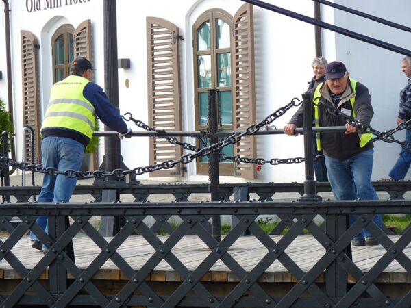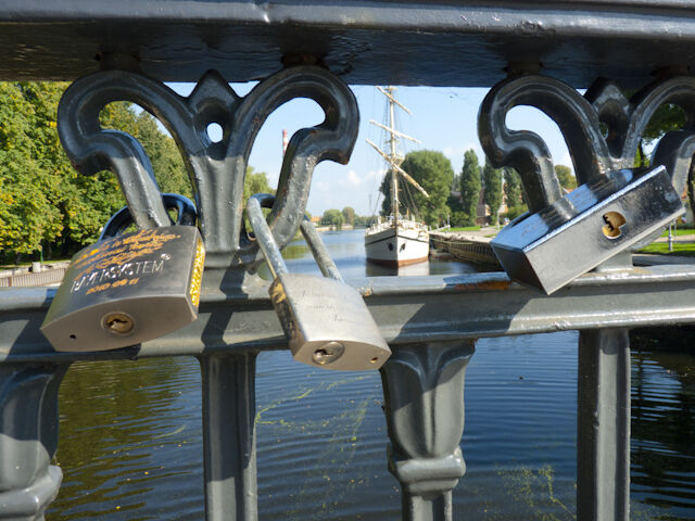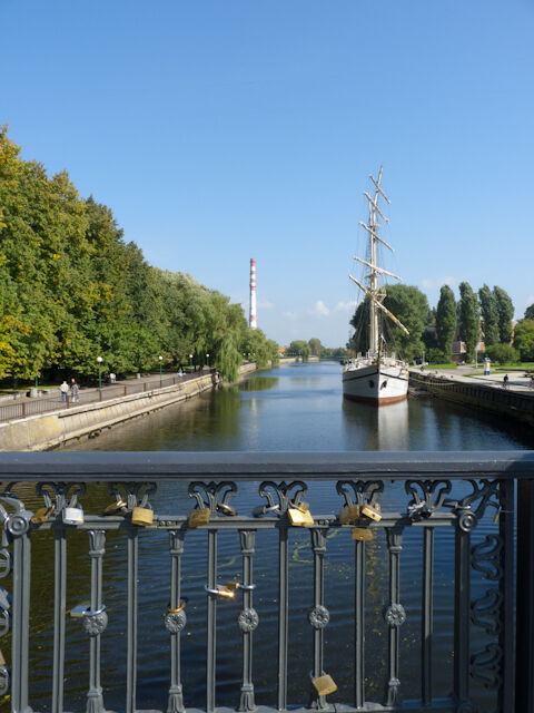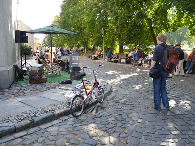 Dit is een foto van in het centrum van de stad.. Op deze brug trouwen koppeltjes die dan als teken van hun trouw een slot aan de brug hangen en (wss) de sleuteltjes in het water gooien.. De boot die daar ligt wordt enkel nog gebruikt als restaurant.. Op onze uitgestippelde wandeling (uit Bart z'n gids) kwamen we ook een klein rommelmarktje tegen, waar een oud vrouwtje stond met een kraampje met zelfgemaakte pantoffeltjes :) Voor 10 litas (9 euro) kon ik daar natuurlijk niet aan weerstaan en heb ik dan toch m'n eerste litouws hebbedingetje gekocht..