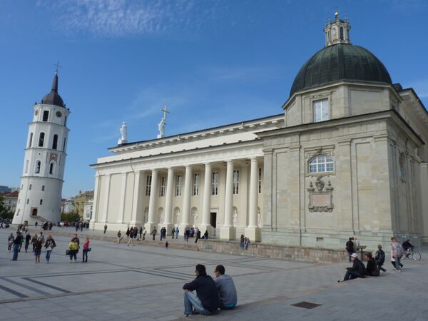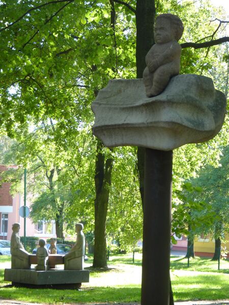 Ej In het weekend van 25 september zijn we de hoofdstad, Vilnius, gaan bezoeken.. Met "we" bedoel ik Maarten, Bart, Maarten, Naomi, Laura en ik.. We hadden een gezellige kamer met 3 stapelbedden in een leuke jeugdherberg dicht bij het centrum van de stad.. Voor de eerste dag stond voornamelijk het oude stadscentrum op het programma.. Het eerste dat we tegenkwamen was een plein vol bloemschikstukken.. Ik denk dat het een soort competitie was ofzo.. Er waren ook enkele lege bakken waarin de kinderen hun talenten konden tonen..