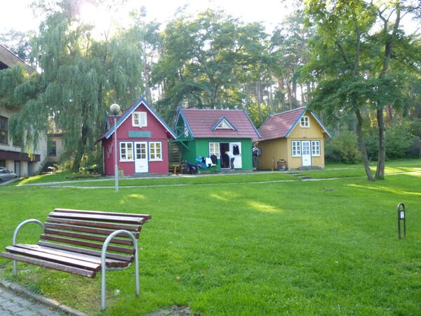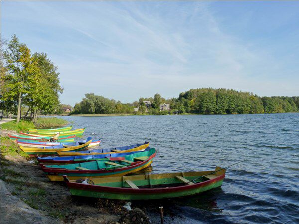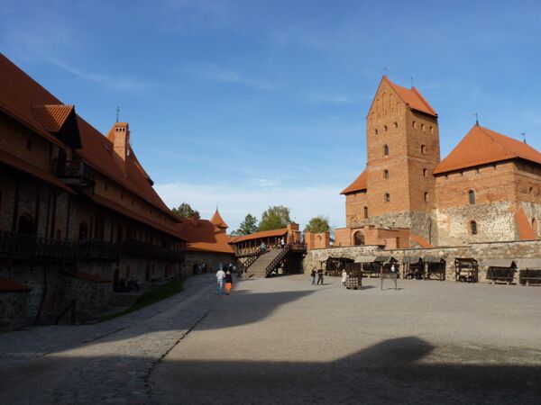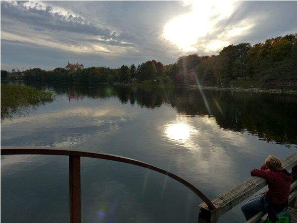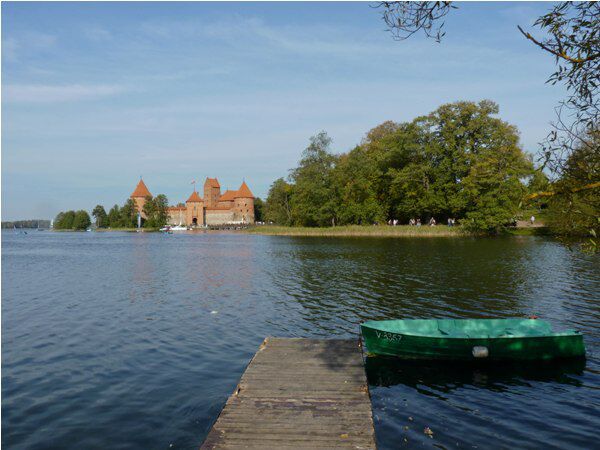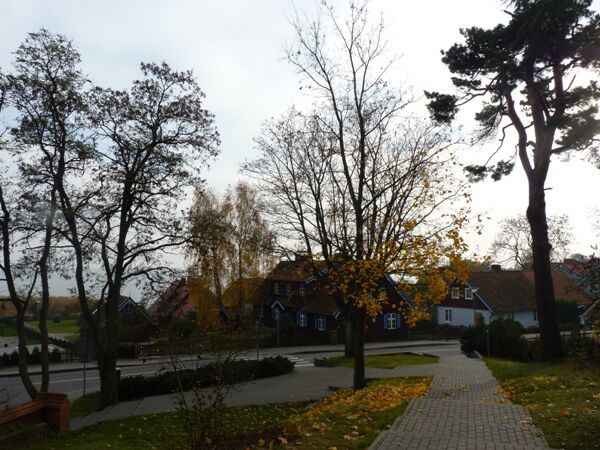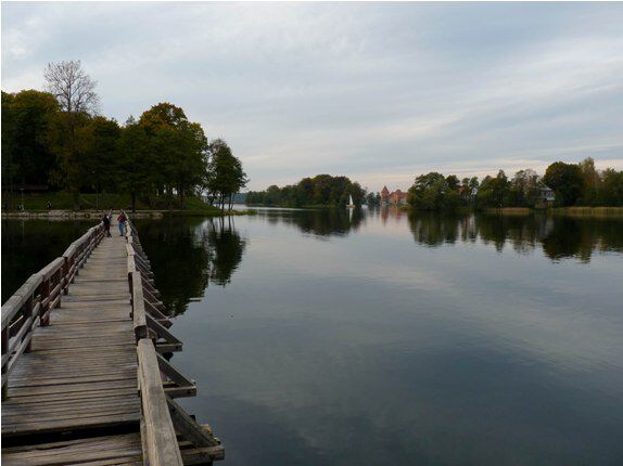 Eindelijk aangekomen in Trakai waren we van plan om een fiets te huren, maar dit was volgens de "vriendelijke" dame van de toeristische dienst niet meer mogelijk aangezien het fietsseizoen al voorbij was.. Wandelen dan maar.. Onderweg naar het meer hebben we heel wat kleurrijke taferelen gezien van knalgroene huizen tot herfstkleurige bomen..