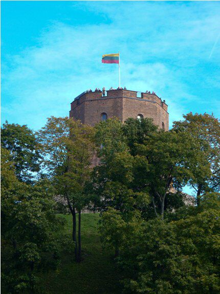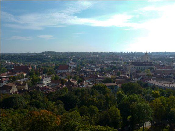 Na de kathedraal passeerde onze tocht langs de plek waar ooit het zogenaamde "lower castle" stond.. Nu zijn er echter enkel een paar ruïnes over, maar volgens de rough guide zouden ze bezig zijn aan het bouwen van een replica.. Vlak achter dit "lower castle" ligt een heuvel waarop zich het "upper castle" bevond, maar ook daar blijft niet veel van over.. Het enige zichtbare overblijfsel van dit kasteel is de Gediminas Toren.. In deze toren bevindt zich het "upper castle museum", waarin enkele modellen te zien zijn van het kasteel in volle glorie.. Vanop de toren hadden we ook een heel mooi uitzicht op de hoofdstad..
