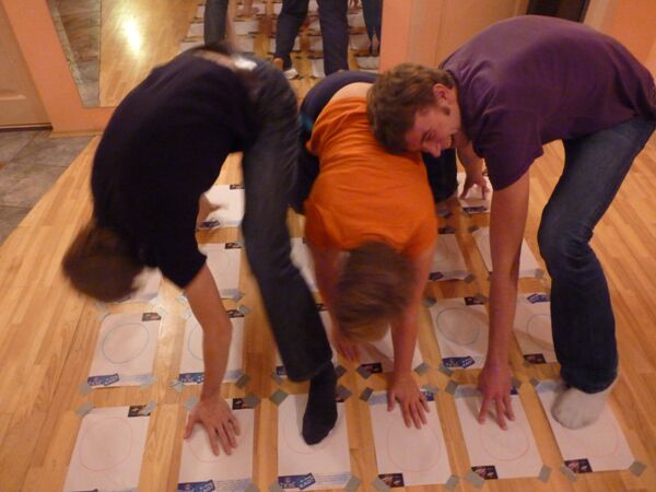 En de volgende foto toont dan wat er gebeurt als je wafels wil bakken en twister wil spelen tegelijkertijd..