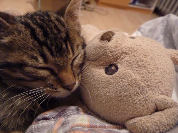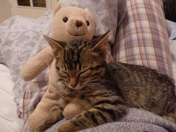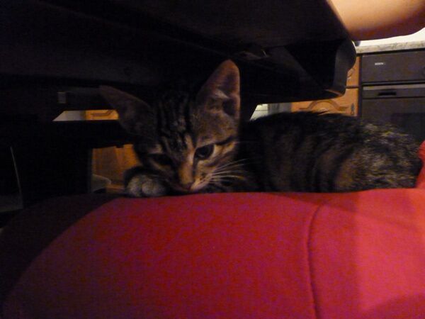De eerste avond had 1 vd 2 zich genesteld op m'n schoot onder tafel terwijl wij aan't eten waren ..