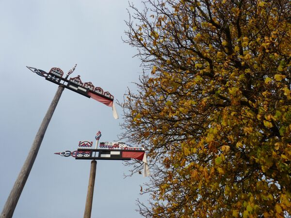 Op de foto hieronder zie je een soort windwijzers die zich vroeger op boten bevonden om duidelijk te maken van welk dorp de vissers kwamen en waar ze dus mochten vissen.. Ieder gebied had namelijk zijn eigen 'stuk' water en de vissers moesten in hun eigen water blijven..