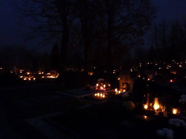 Onze prof van 'Cultural History of the Baltic States' had ons aangeraden om op de 1e november een kerkhof te gaan bezoeken.. Ik vond het nogal een raar idee om een kerkhof te bezoeken als toeristische activiteit, maar toen ook studenten van onze leeftijd zeiden dat je het toch eens gezien moest hebben, werd ik toch wel nieuwsgierig.. Ik had het adres van Bart gekregen en in de GPS gestoken.. GPSen zijn duidelijk niet altijd te vertrouwen.. Plots zaten we in een nogal louche buurt met niets anders dan rijen van garages.. We zijn dan toch maar teruggekeerd.. Na enkele onduidelijkheden in de communicatie tussen Bart en mij (Bart en Lies waren ondertussen te voet op weg naar hetzelfde kerkhof) zaten we plots op de autostrade en reden we Klaipeda uit.. Dit kon toch niet de bedoeling zijn.. We namen de eerste afrit terug naar Klaipeda en hadden het bijna opgegeven toen we plots heel veel volk zagen.. Enorm veel auto's stonden geparkeerd naast de weg, heel veel mensen liepen allemaal in dezelfde richting met bloemen en kaarsen in hun handen en er stond overal politie.. We hadden blijkbaar toch nog het kerkhof gevonden