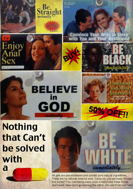 - Enkele koopjes -> "Everything can be solved with a pill" (gebaseerd op een tentoonstelling uit het MUDAM te Luxemburg).