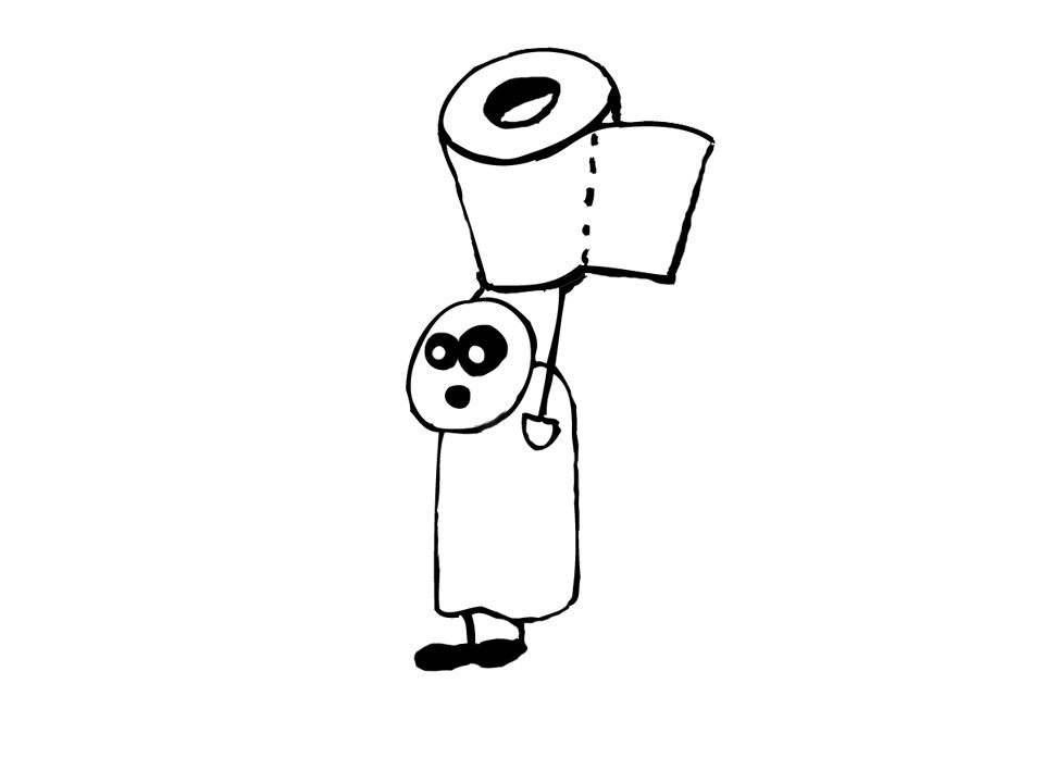 Klik op de afbeelding om de link te volgen In ons magazine willen we enkele linken leggen naar het werk van de PO- en MO-studenten uit onze groep. Omdat we deze link willen verduidelijken, maar toch niet overduidelijk van je blad laten springen, hebben we gekozen voor een (subtiele) cartoon. Het is een heel simpel mannetje dat een rol toiletpapier boven zijn hoofd houdt. Dit mannetje zullen we telkens bij een topic plaatsen waar een verwijzing naar de andere werken aanwezig is.