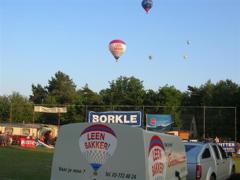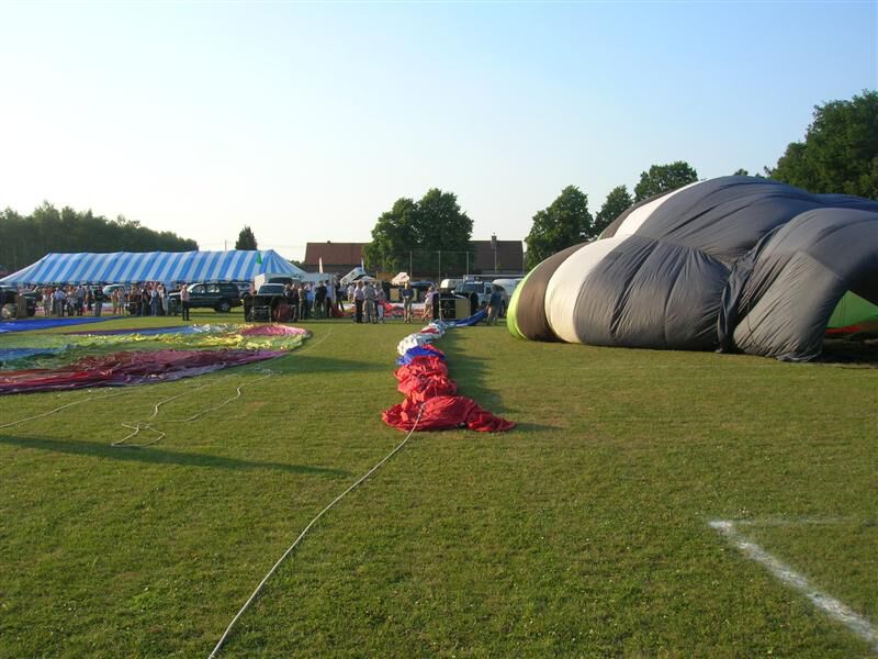 Nadien mochten er 13 mensen mee met de 2 ballons, en zij maakten een mooie vaart mee, en met een gezamelijke landing op hetzelfde terrein was de avond meer dan geslaagd.