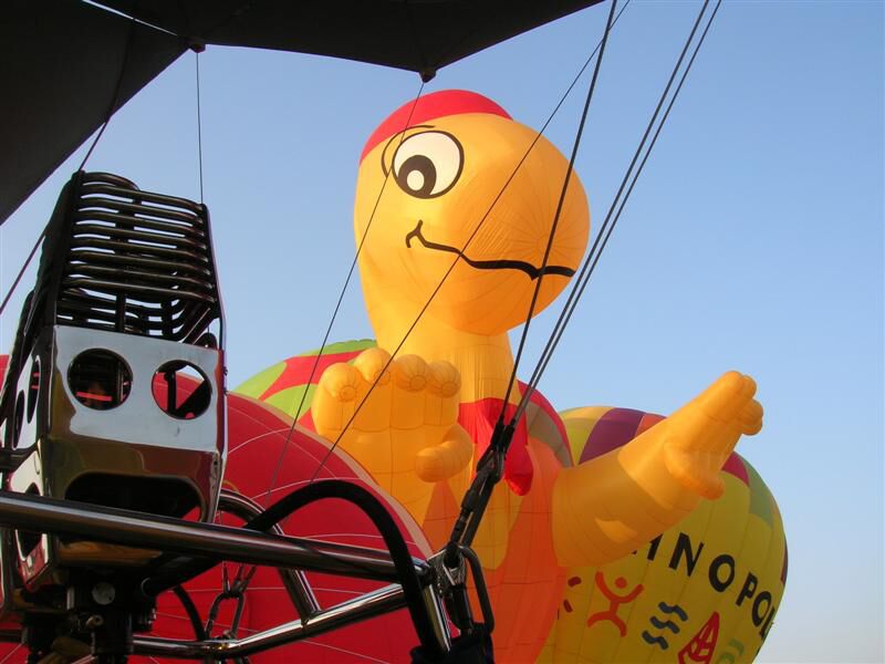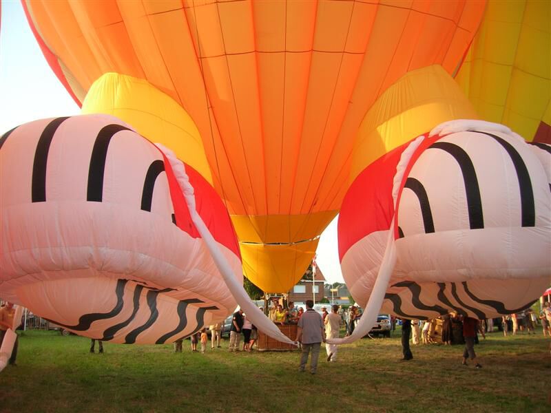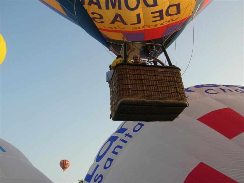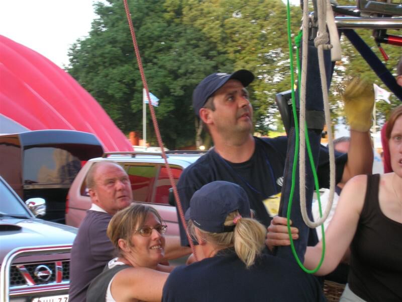 Terwijl de Leen Bakker ballon,de Vondelmolen peperkoek,de Suske en Wiskeen de Domaine de la Serre ballon zich klaarmaken, stijgt de ballon van François Schaut ook op.