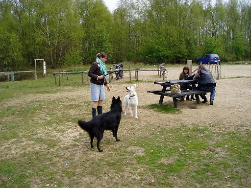 Vandaag ben ik samen met mijn "boskes" gaan spelen over de deur! Toen ik in de hondenweide aankwam, kwam er direct een laika black aangelopen. Ik heb mij niet laten schuren en ik kwam telkens hijgend terug met een tennisbal in mijn bek. Nadien kregen mijn baasjes zin in een duveltje, vooral mijn vrouwtje zette een stapje sneller... richting visklub! Chance voor mij, belde een vriendin, zodus kon ik Xena & Bo'ke choco nog eens zien. Weulle terug richting Hondenweide! Hijg hijg hijg hijg