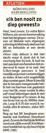 De laatste kilometer kwamen we terug op het vlakke afsvalt en dit ging terug stukken beter. Ik kon snel recupereren en nog een snelle laatste kilometer uit de benen schudden. Maar het kalf was al verdronken. Als 3e junior kwam ik aan. Jente Joly won de wedstrijd in een sterke tijd. Het was een leuke uitdaging maar toch niet voor herhaling vatbaar. Nu een paar weken rust en dan concentreren op de steeple. Met oa PK Steeple, Int.meeting te Uden, Nacht van Atletiek en BK Alle Cat. staan er nog leuke wedstrijden op het programma.