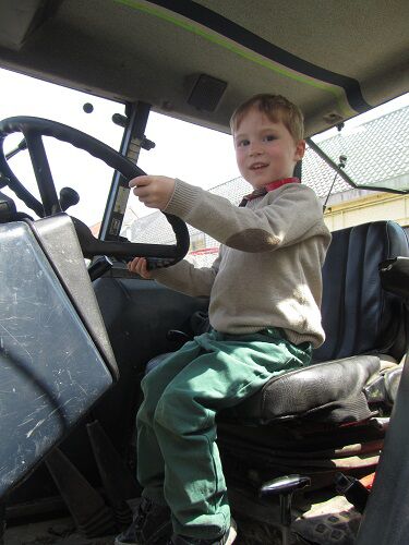 Sébastien zijn papa en mama kwamen hun tractor tonen op de speelplaats. We mochten er allemaal eens op zitten