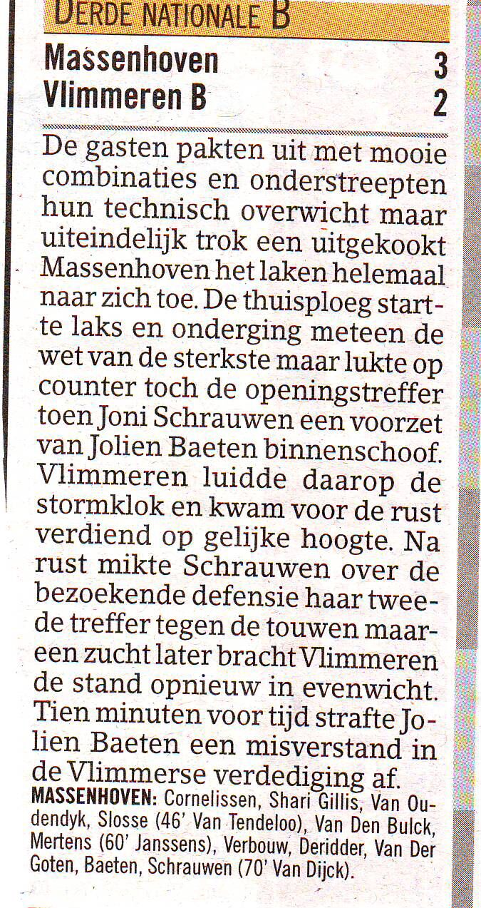 Het Nederlands vrouwenelftal heeft vanmiddag in het Franse Compiegne met 0-2 (0-0) gewonnen van Frankrijk, de nummer zeven van de FIFA World Ranking (Nederland staat momenteel op de twintigste plaats). Na 75 minuten opende Karin Stevens (Willem II) de score in deze oefeninterland. Chantal de Ridder (AZ) maakte in haar vijfde interland haar eerste doelpunt voor Oranje en zette daarmee in de 82e minuut de eindstand van 0-2 op het scorebord in het Stade Paul-Cosyns. Voor de vierde maal achtereen incasseerde het team van Vera Pauw geen tegengoal.
