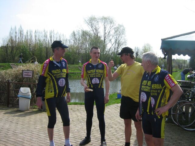 Het zal je maar overkomen. Met volle moed starten voor het brevet 150 km in de gietende regen en 8 platte banden hebben en 1 platte JP. Thanks aan allen die erbij waren want zij hebben allen mij een grote eer toe gebracht omdat deze rit een herinneringsrit was voor mij aan wijlen mijn schoonvader Alberiek De Bilde die helaas twee jaar geleden gestorven is in de nacht voor het brevet 150 km 2007. Voor sommigen was het hun eerste brevet 150 km en dat geeft een extra om dit te evenaren en ik ben er zeker van dat ze allen tevreden waren om deze prestatie neer te zetten. Het was alweer een mooie samenwerking van al onze clubleden die erbij waren want iedereen vertrok samen en kwam samen thuis. De gemiddelden telden niet maar de cluspirit had de bovenhand en dat is het echte clubgevoel van WTC Heirnis Gent. Proficiat !!! Mogen we zo verder doen. Prestaties van gemiddelden tellen niet maar deelnemen is het belangrijkste ! Ook een dankwoordje aan Patrick die twee weken als volgwagen perfect zijn functie uitvoerde !