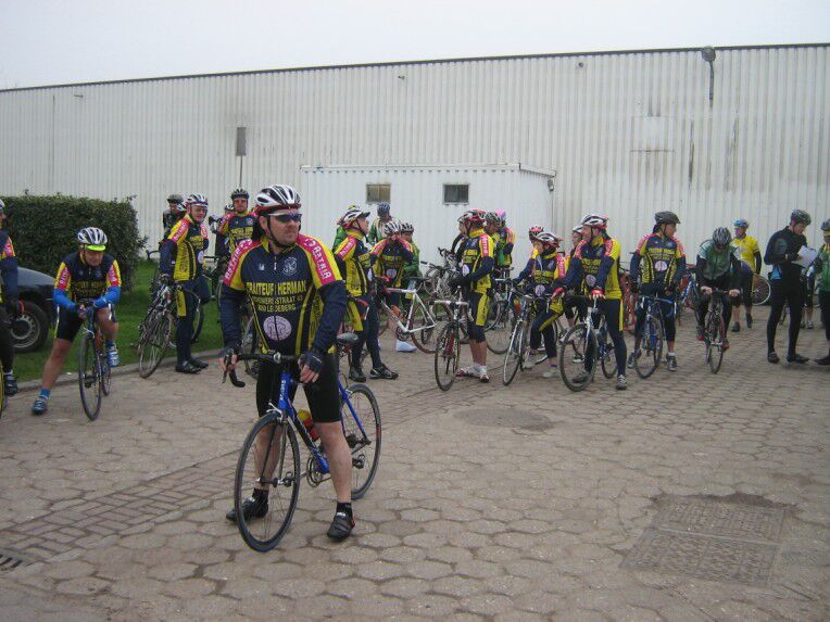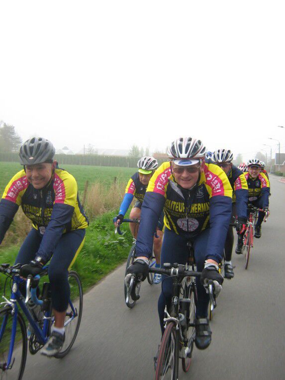 Helaas geen foto's van vandaag wegens het slechte weder.Vandaag was de afspraak in de Schoolstraat in Sleidinge voor de Maldex Hörmann rit 60 km . Na de wijding van gisteren op de sporta bedevaart was het vandaag een algemene wijding want de sluisdeuren stonden open. Wind en regen hielden onze leden toch niet thuis. Wat hebben we toch veel over voor onze sportieve hobby. Na de inschrijving hadden al vlug de kopnemers die onze groep op sleeptouw nam in ons hart gesloten want ze hebben de volle rit voor hun rekening genomen en dit kunnen we tenzeerste toejuigen als je zo leden mee hebt die zich ten volle inzetten voor de rest van de club. Niet iedereen wil zo iets 60 km lang voor zijn rekening nemen en het mooie was dat het tempo aangepast werd zodat iedereen kon volgen. Daarvoor dank aan Roger,Norbert,Andre en Jean-Pierre. Ook eens vermelden dat ik een mooie inspanning gezien heb van Martin en Dirk om deze die het lastig hadden terug in de groep te brengen en hun de moed in te spreken om in de groep te blijven (samen uit samen thuis). Het parcours was goed uitgepijld en nergens hadden we twijfels en dit in zulk een weer. De rit was een prachtige rit (en zeker als het mooi weer moest zijn). De thuisblijvers hadden ondanks het slechte weder ongelijk want het word de hoogste tijd om de conditie op peil te krijgen voor de grotere afstanden (brevet 75,100,150 km enz..). Thanks aan de flandriens die present waren