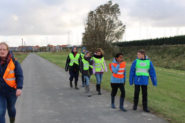 Onze gidsen waren echter zeer creatief en stelden onmiddellijk een andere activiteit voor. We trokken langs de Ijzer meer landinwaarts en gingen vogelspotten. We leerden over de verschillende vogels die aan onze kust leven en pikten ook een stukje plaatselijke geschiedenis mee.