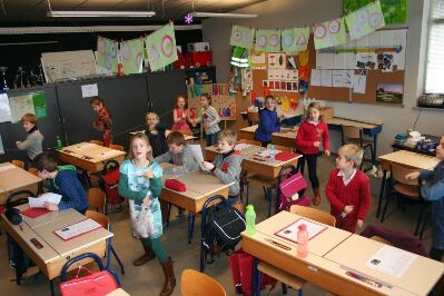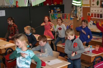 De Sint kwam per bus op bezoek, maar dan zonder Zwarte Pieten. Dat was geen probleem want alle kinderen behaalden hun Zwarte-Piet-diploma. Er werd ook een liedje ingeoefend: Hey hallo Sinterklaas. En er werd veel geknutseld om Sinterklaas welkom te heten.